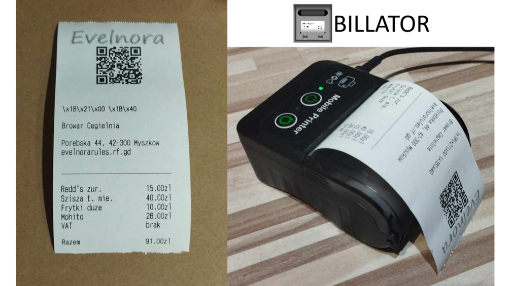 Billator nie jest generatorem paragonów i nie może obliczać cen produktów/usług, podatków typu VAT i tak dalej.